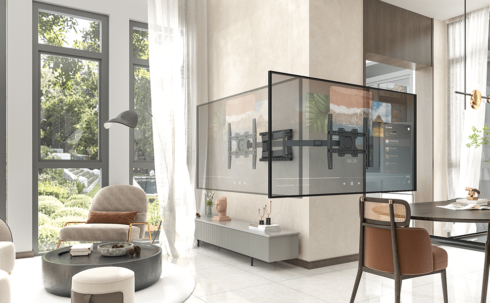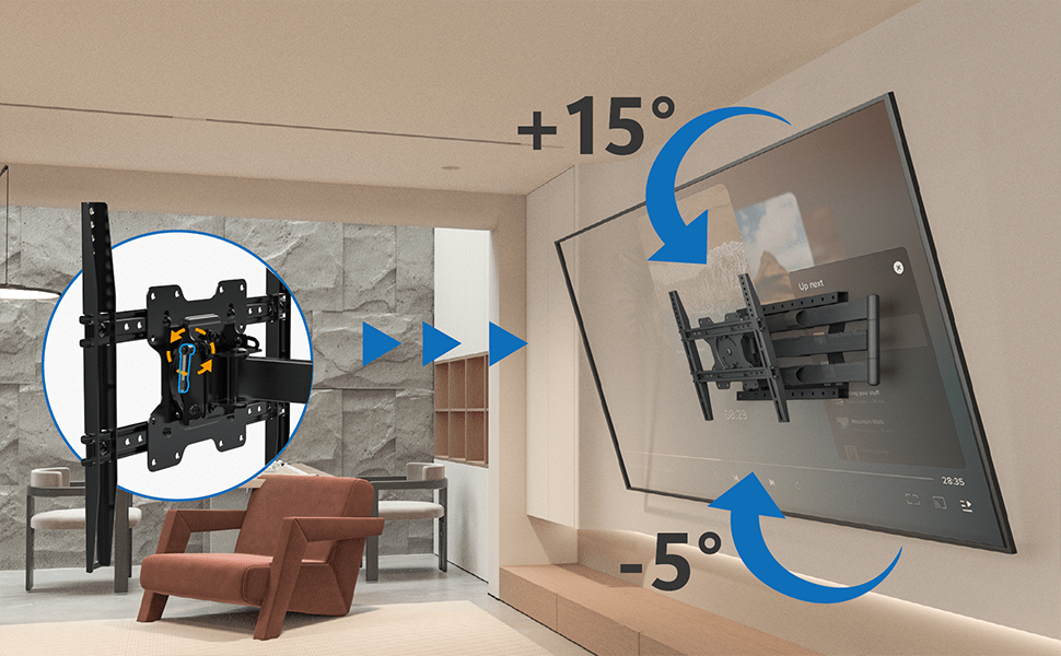 - Volledig draai- en kantelbaar: Richt de tv exact op jouw zitplek en kantel het scherm om hinderlijke reflecties van ramen of lampen te vermijden.