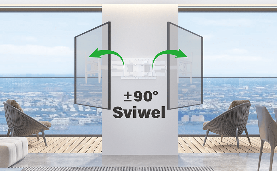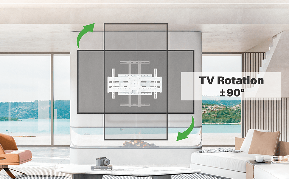 - Roteerfunctie (360°): De unieke VESA-kop stelt je in staat de tv na montage exact horizontaal uit te lijnen of zelfs volledig verticaal (portretstand) te draaien.