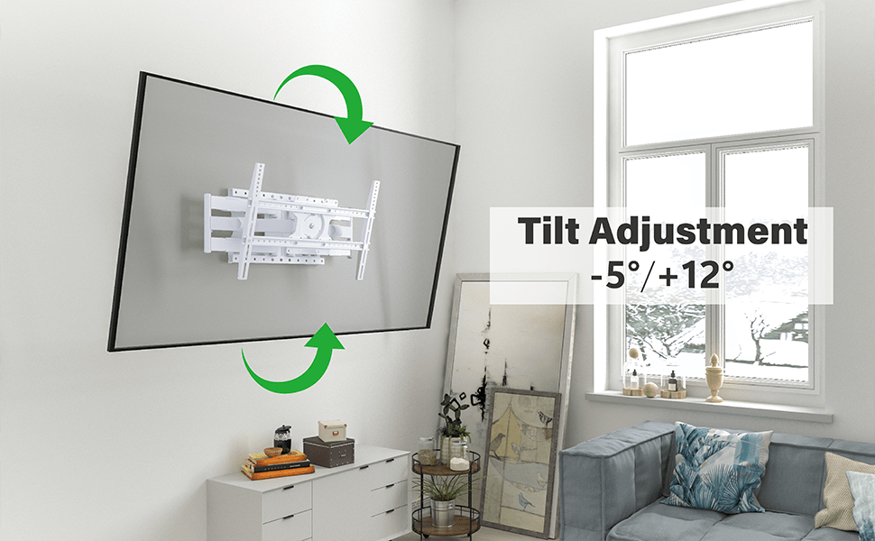 - Groot instelbereik: Met een bereik van 80 cm kun je de tv ruim draaien en kantelen (12° omhoog, 5° omlaag) voor de perfecte kijkhoek zonder reflecties.