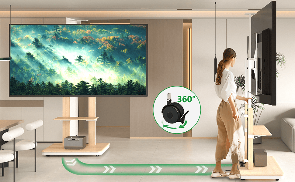 Stijlvolle mobiliteit met de XTRARM Duolite TV standaard (Wit/Beuken)