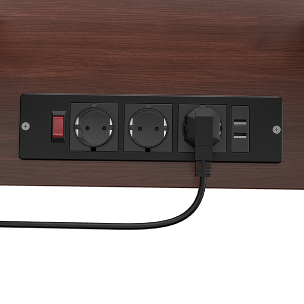 - Geïntegreerde stroomvoorziening: Voorzien van een ingebouwde stekkerdoos met 3 stopcontacten en 2 USB-poorten. Zo heb je slechts één kabel naar het stopcontact nodig.