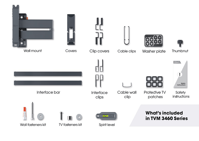 Zoek je een veilige, draaibare tv beugel voor je kwetsbare OLED tv? Een beugel die naadloos past bij het minimalistische design van je tv? Maak kennis met de stijlvolle COMFORT Full-Motion+ tv beugel. De beugel is speciaal ontworpen voor OLED tv’s van 32 tot 65 inch en een gewicht van maximaal 25 kg. Hij kan maar liefst 180° draaien. Hierdoor geniet je moeiteloos vanaf elke plek in de kamer van je mooie OLED tv. Je OLED tv heeft een kwetsbaar scherm. Het is extreem dun. Daarom hebben we gezorgd dat de COMFORT Full-Motion+ tv beugel extreem soepel draait. Dankzij onze One-Finger™ Movement technologie draai je je OLED scherm met slechts één vinger in de gewenste positie. Wil je weten hoe ver jouw OLED tv kan draaien? Vul je tv-type in op deze pagina en onze tool rekent de werkelijke draaihoek direct uit. Je OLED tv heeft een mooi, minimalistisch frame design. Het ontwerp van deze beugel sluit daar naadloos op aan. Zachte patches beschermen de achterzijde van je tv bij het bevestigen. Het unieke TiltAnchor™ systeem zorgt ervoor dat je tv veilig vastzit: kantelen is dankzij de ultieme inkijkhoek van een OLED tv niet nodig. Om de COMFORT Full-Motion+ tv beugel te installeren, hoef je geen professional te zijn. Een boormal, schroeven, fischer® DuoPower pluggen, kabelbinders en een waterpas zijn bijgesloten. Het eerste boorgat bepaal je eenvoudig met onze gratis DrillRight™ AR App.
